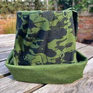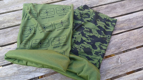 Camo and Green Reversible tubes have the Danum Blades Logo on the front and is plain green inside.