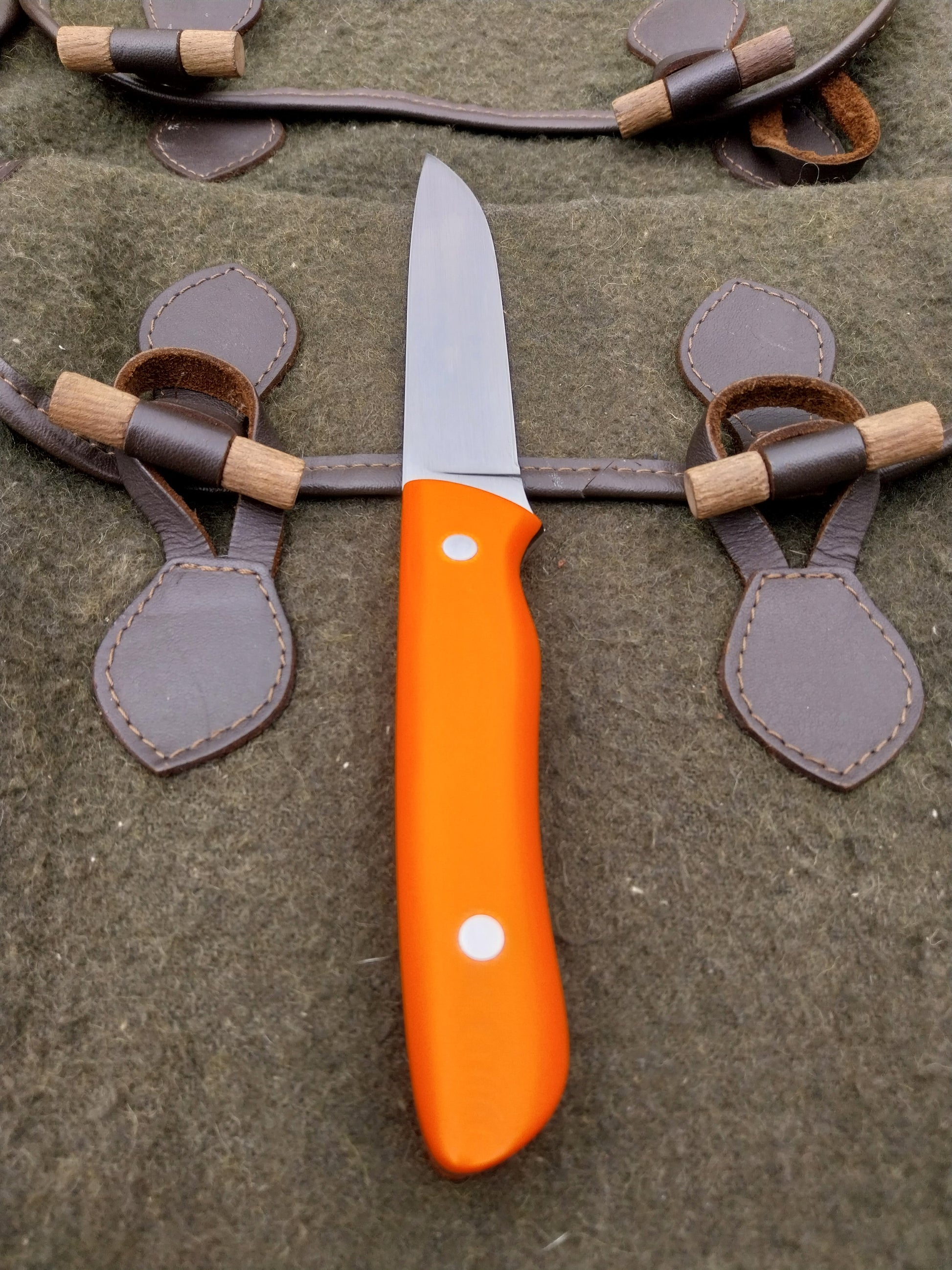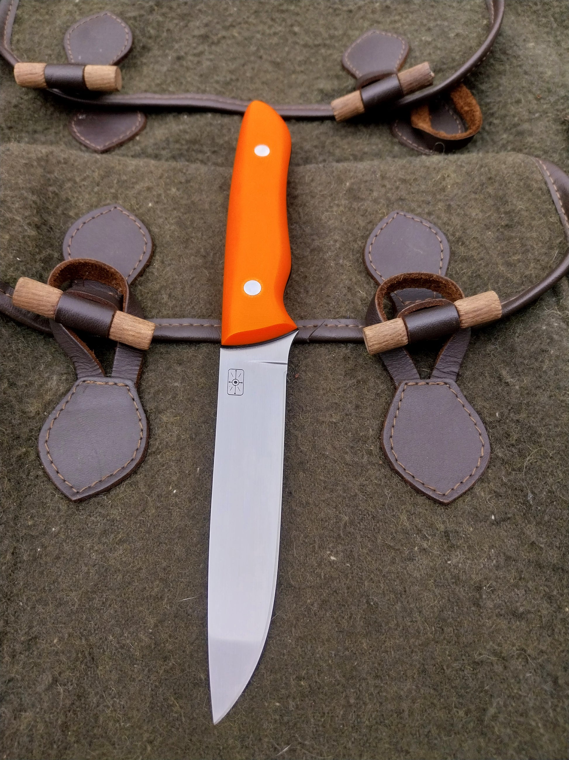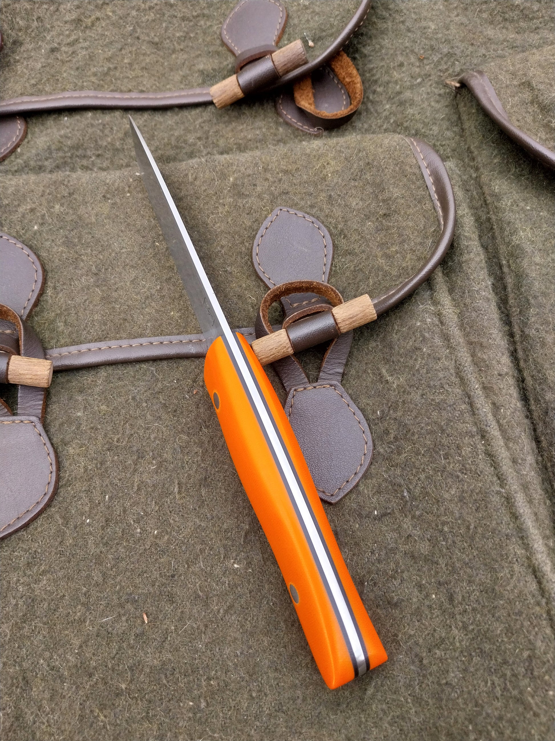 This Fallow Stalker knife has been fitted with Orange G10 scales that have been set with black G10 liners.
