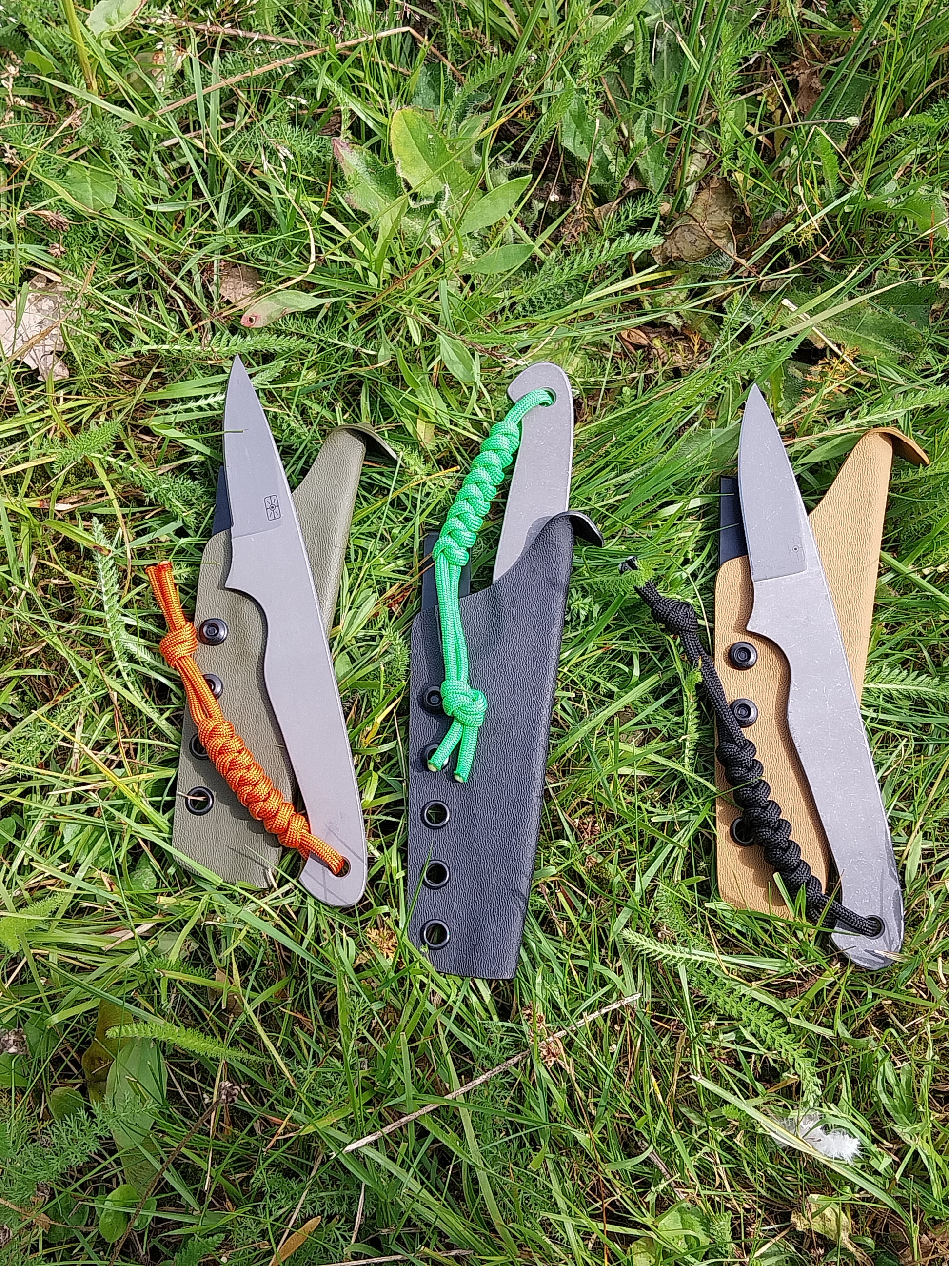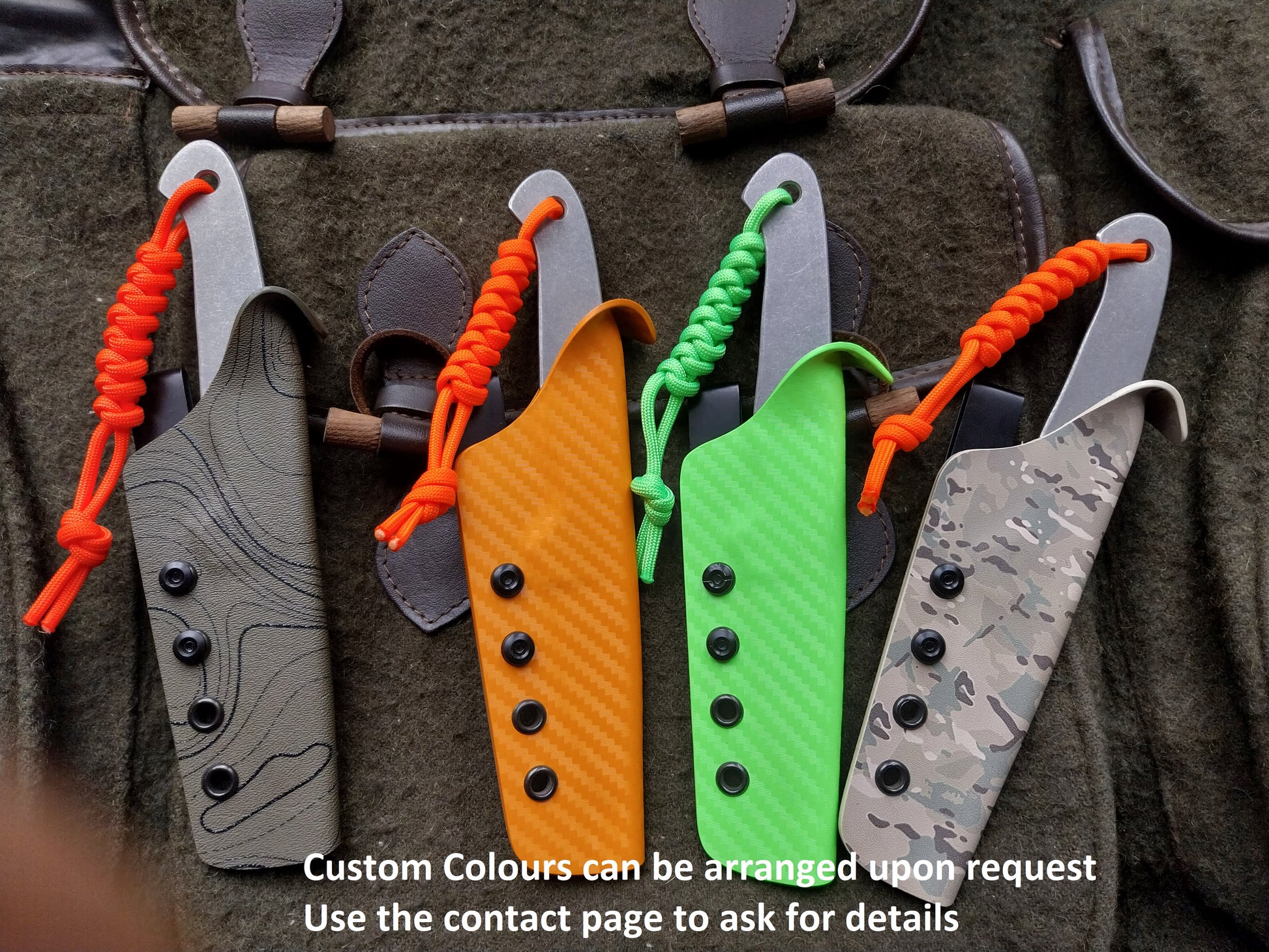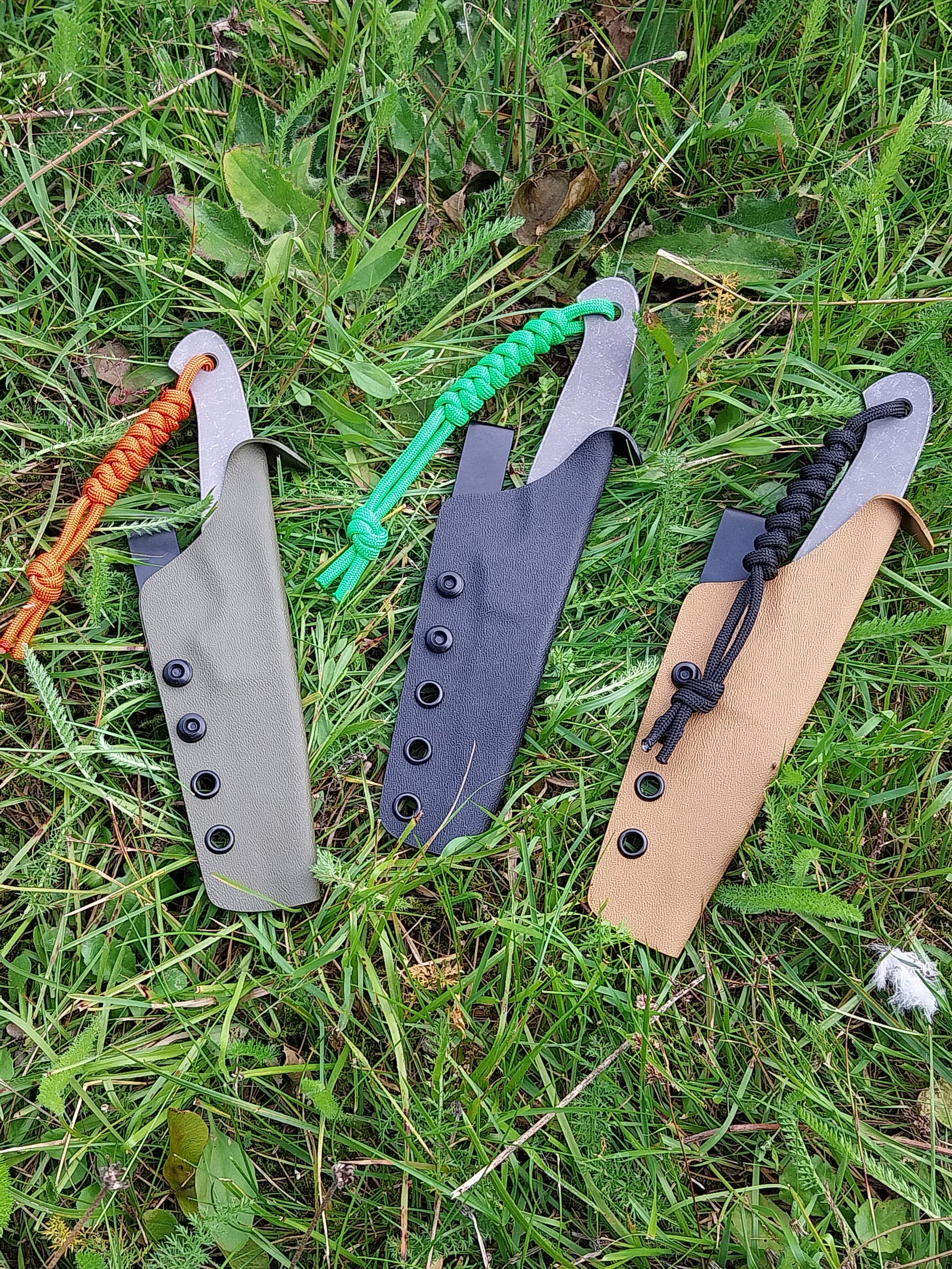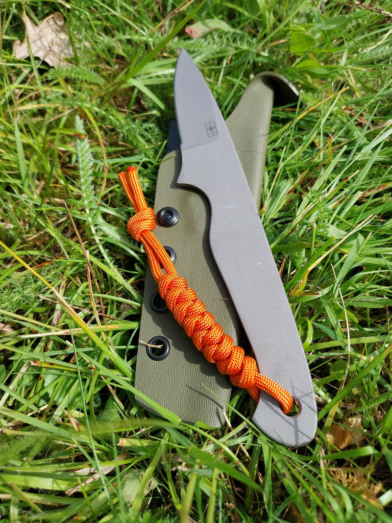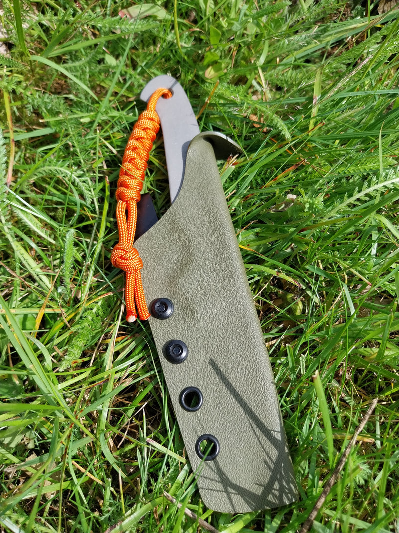 Olive green sheath with orange lanyard