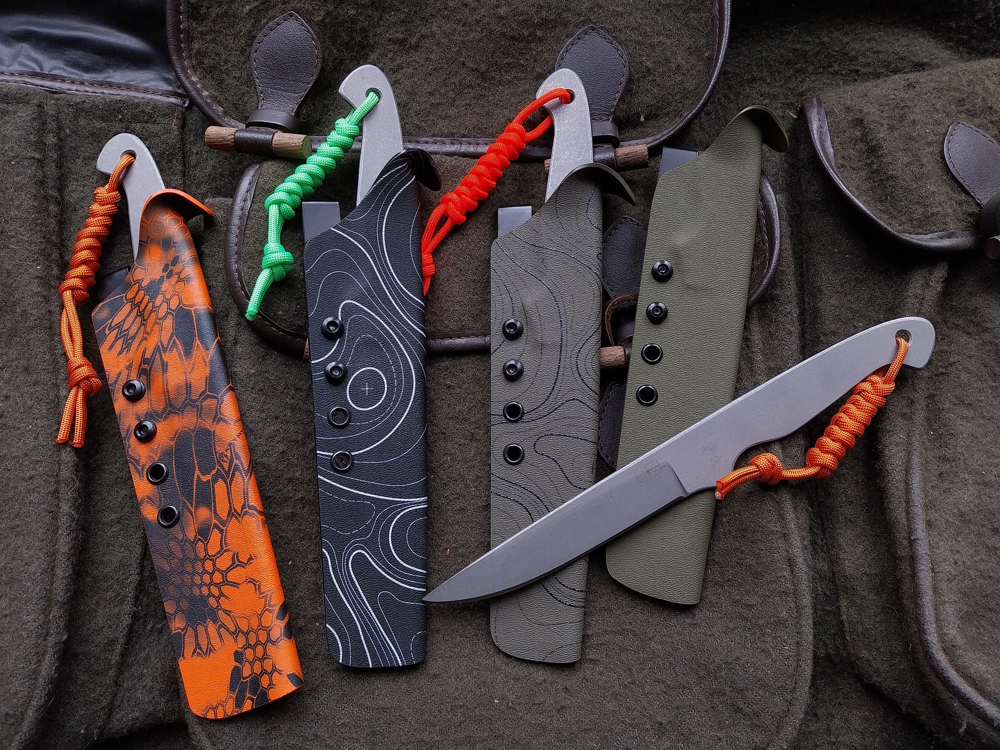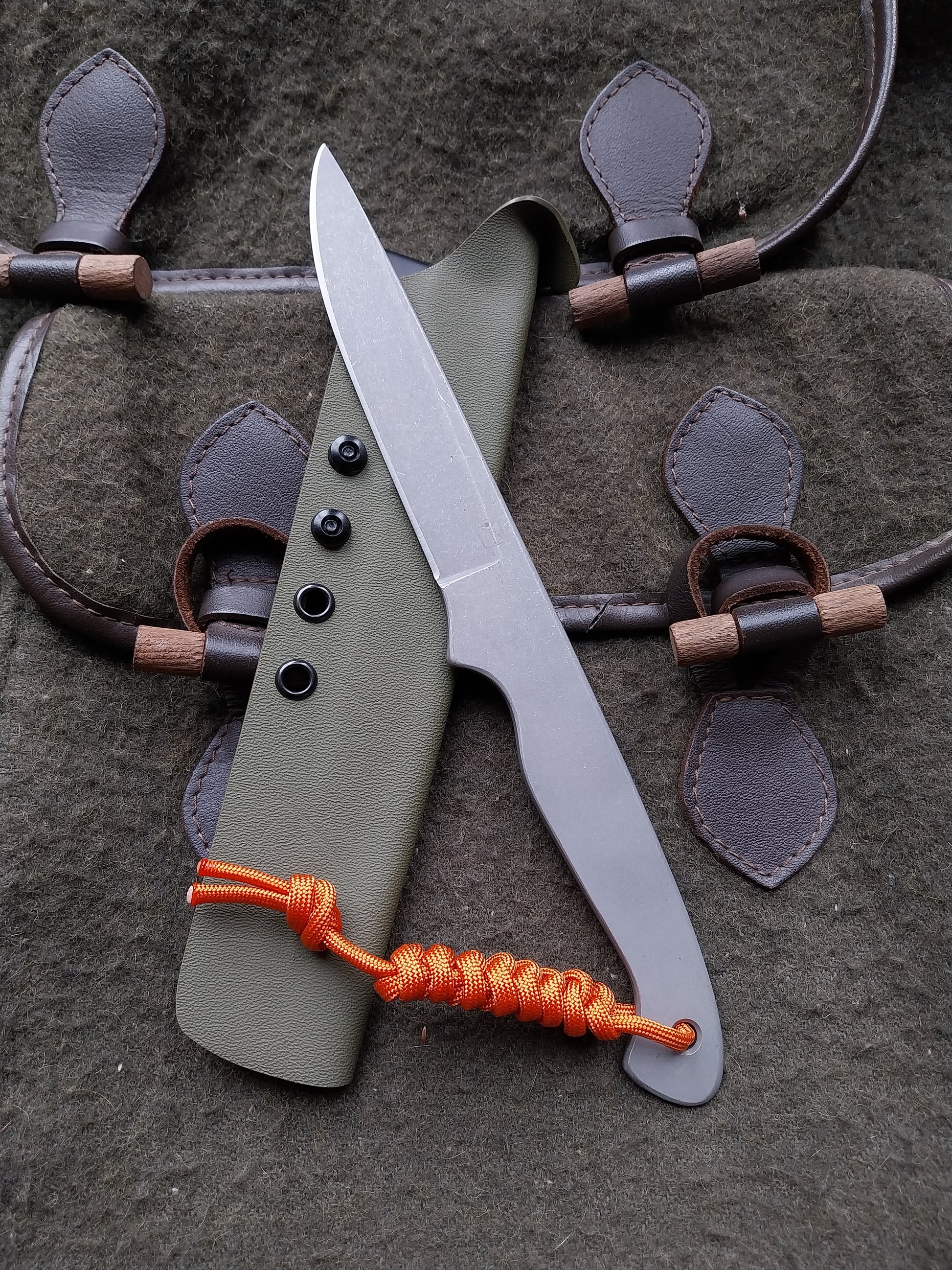 Olive green sheath with orange lanyard