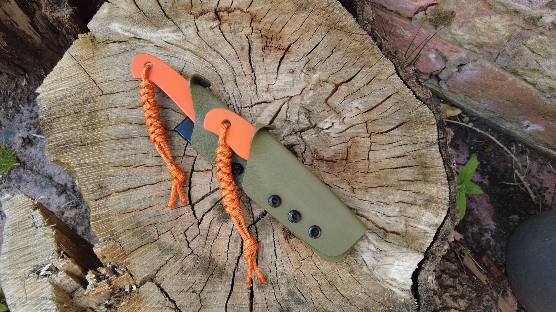This combination as been made with the versatile Muntjac Catcher and the smaller Coney Kit Zipper. Both blades have been given a hi-viz cerakoted finish. lanyards are attached for easy extraction from the sheath and for ease of use for the zipper.