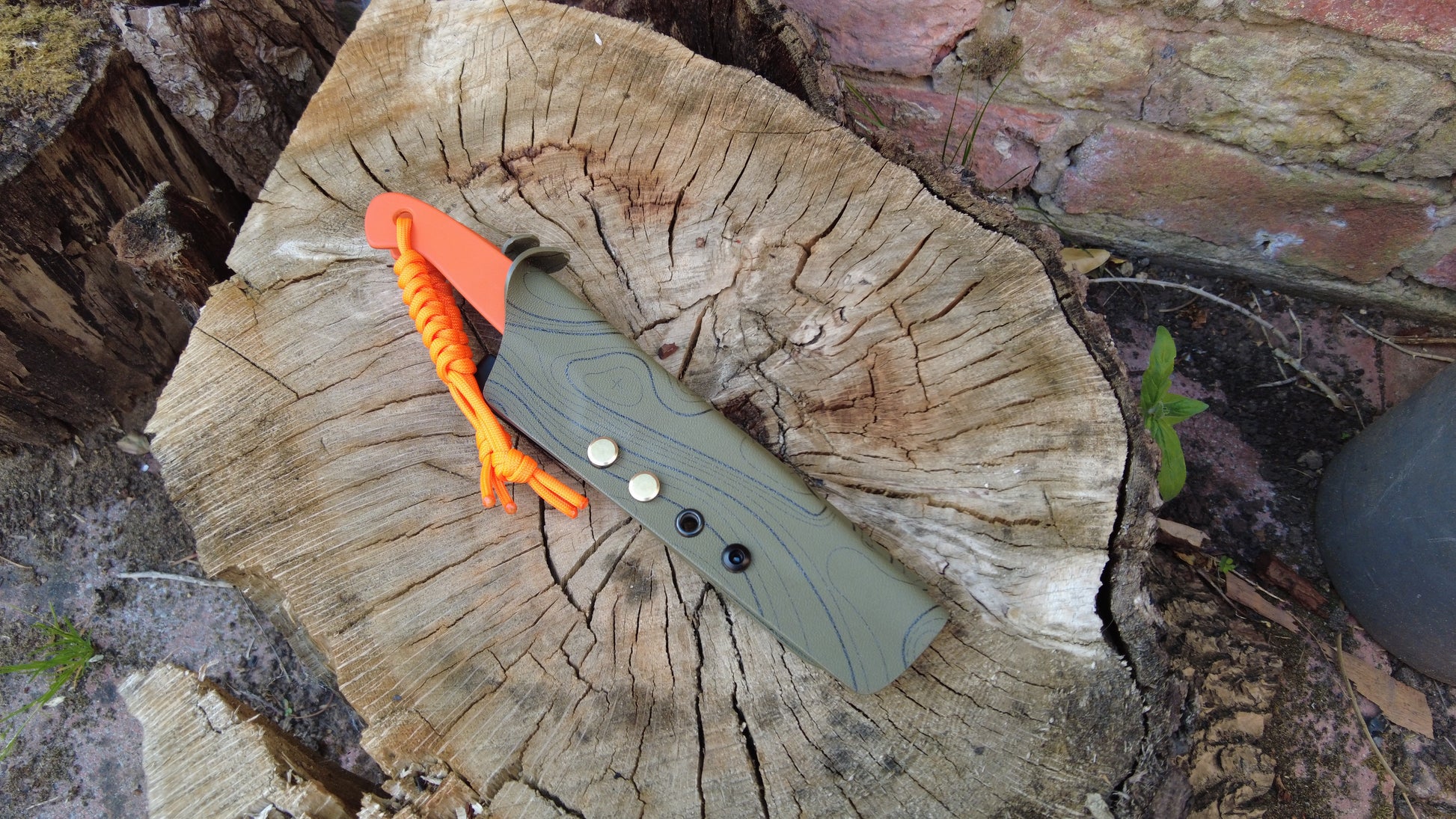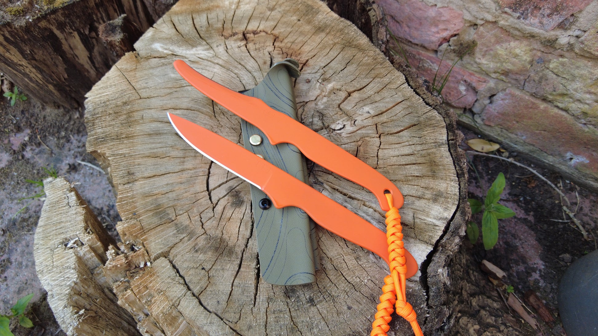 This combination as been made with the versatile Roe Catcher and the Zipper Catcher. Both have been given an orange hi-viz cerakoted finish. lanyards are attached for easy extraction from the sheath and for ease of use for the zipper.