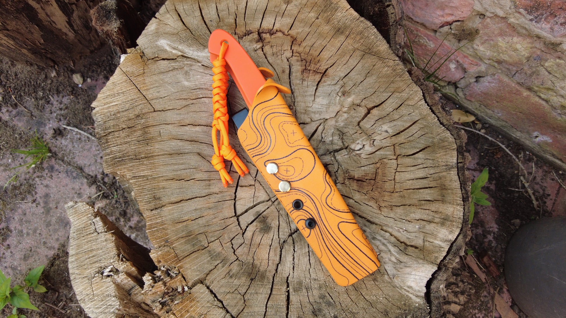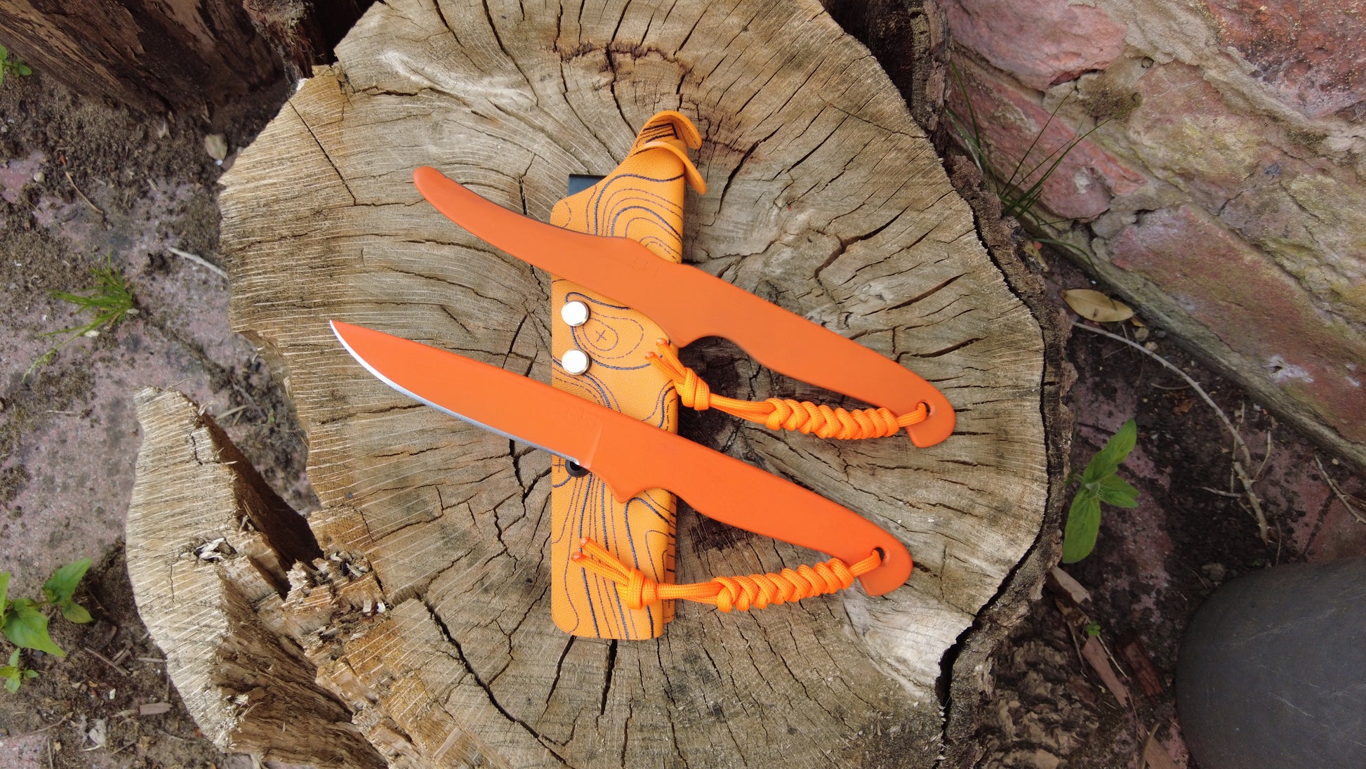 This combination as been made with the versatile Roe Catcher and the Zipper Catcher. Both have been given an orange hi-viz cerakoted finish. lanyards are attached for easy extraction from the sheath and for ease of use for the zipper.