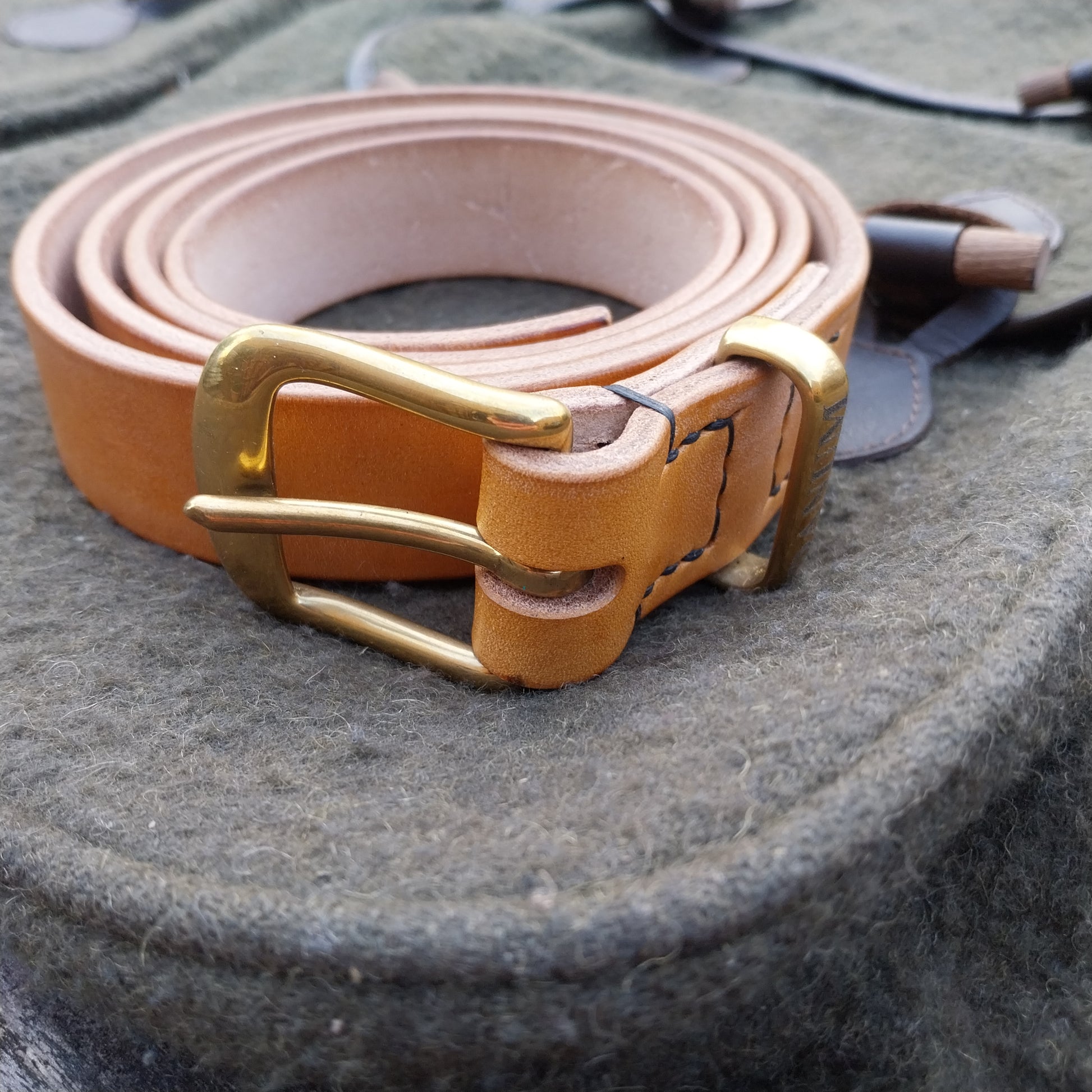 The Prestige Belt is made from J & FJ Baker Co. LTD Cloyon Oak Bark tanned Bridle Butt leather. I have a choice of three Colours London Stain. Australian Nut and Dark stain Which is treated and waxed to give a long lasting finish. And features a UK made, solid brass buckle, and keeper from the Abbey England foundery.